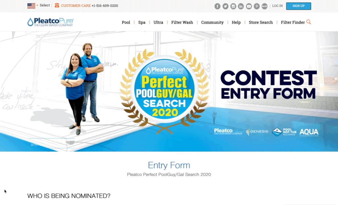 Pleatco and longtime co-sponsors GENESIS / Pool & Hot Tub Alliance (PHTA) along with their new media partner AQUA magazine have launched the 2020 search for the best of the best pool and spa service technicians across the country and extending as far as Canada and Europe. Since 2007, Pleatco and co-sponsors have been shining a spotlight on this segment of industry professionals who are more accustomed to working in the shadows. The contest is an innovative way to honor the hard-working men and women of the pool and spa service industry.